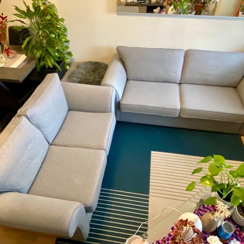 Sofaen er fra A-møbler og har vanlig bruksslitasje ellers i god stand. Må hentes, kan hjelpe med å bære den ut. Den blir vasket før henting