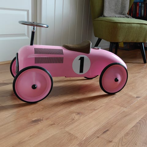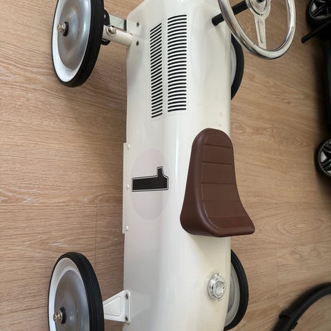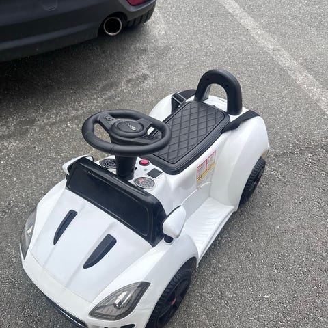 Gåbil som forestiller en hvit Audi. Må hentes