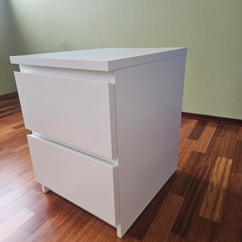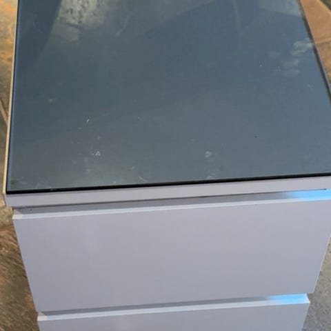 Topp og fronter på skuffer foliert for å dekke over skade på overflate.