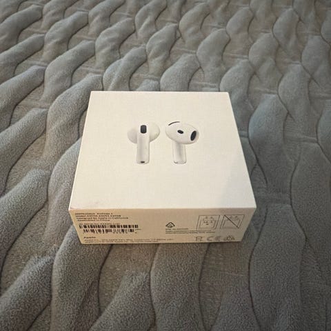 Jeg selger ubrukte apple airpods 4 (2024) med trådløs ladeetui med et års forsikring.