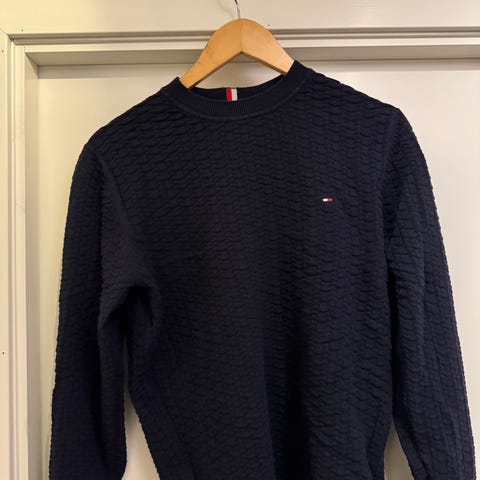Pen marineblå Morris genser i tykk bomull. Hel og pen.