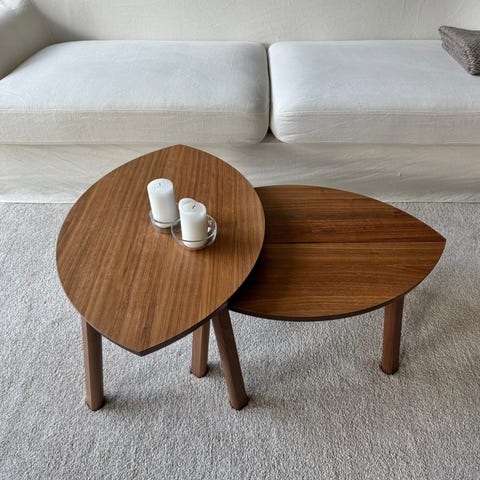 Pent brukte retro bord selges samlet.