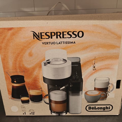 Ubrukt Nespresso Verturo Latissima. Det følger med kapsler til forskjellige koppstørrelser😊