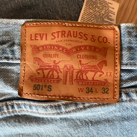Karve jeans for herre i størrelse L med livvidde W34. Buksen er blå og laget av 100 % bomull. Klassisk 5-lommers modell med glidelås og knapp i front. Passer til hverdagsbruk og kan kombineres med både t-skjorte, skjorte og genser. Kjøpt på Carlings for lenge siden.