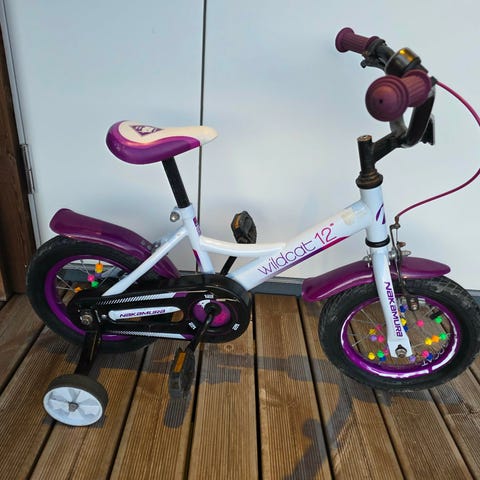 Sykkelen passer for små barn. Den er utstyrt med støttehjul som kan tas av og på etter behov.. Egner seg til bruk på asfalt og jevnt underlag for barn som skal lære å sykle eller som første sykkel
