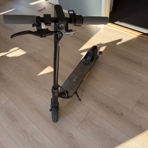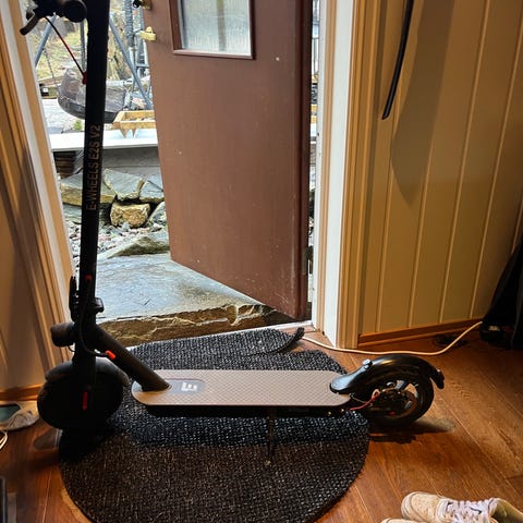 Kjøpt for 3 år siden brukt noe det første året, ellers ikke brukt de siste årene. Funker uten problem stått lagret inne hele tiden. Bremsene bør strammes eller ikke noe skader