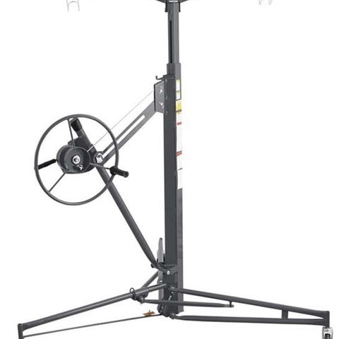 Probuilder gipsplateheis. Egnet for løfting og montering av gipsplater og andre tilsvarende plater i tak og på vegg. Heisen består av sammenleggbart stativ med justerbare armer og sveivemekanisme for å løfte og senke platene. Leveres med original emballasje som vist på bildene.