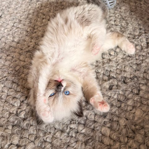 På Instagram legges det ut bilder så man kan følge kattungene til de er klare for levering 🥰 Søk på «Hjertepusragdolls» 🤍 Der blir det også oppdatert oftere med bilder enn her.