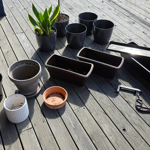 Diverse blomsterpotter i keramikk og terrakotta i ulike størrelser