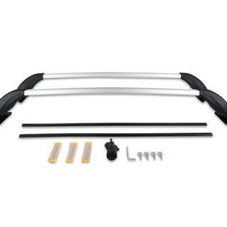 Ford Focus takstativ i aluminium for 5-dørs modell fra 2017 og nyere. Settet består av to tverrstenger med plastdeksler i endene, gummilister og monteringsutstyr.