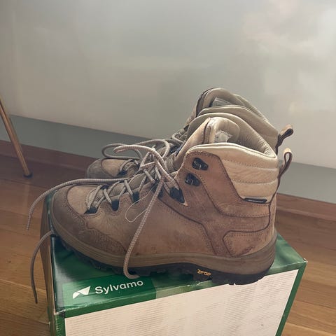 Jack Wolfskin Terraquest tursko med Texapore-membran og Vibram-yttersåle. De er litt skittende, men bare brukt 1 høst. Sålen har ingen tegn til slitasje enda. True to size, me passet ikke min fot.