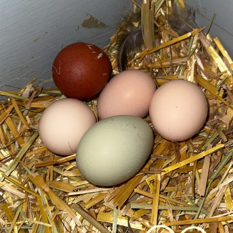 Selger 5 høner, alle klekket i sommer og begynt å legge egg. En maran, en cream legbar blanding, en la bresse og to lohmann. Samlet for 1000kr