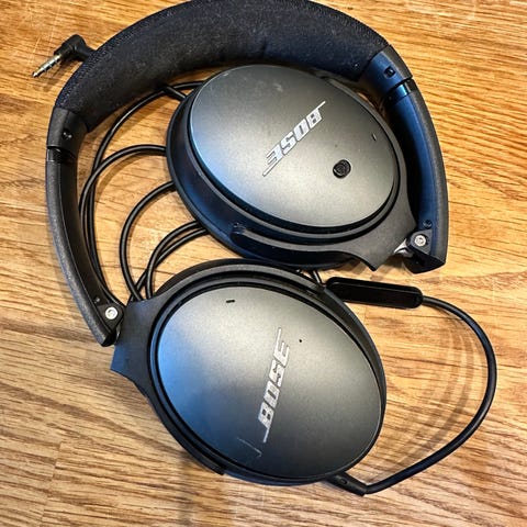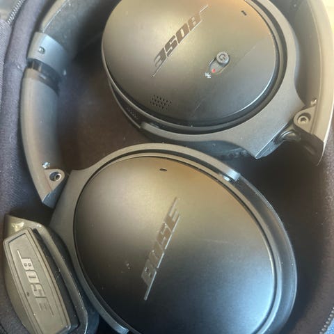 Bose QuietComfort QC35 trådløse hodetelefoner i marineblå selges. Godt brukt. Hodeputene har noe slitemerker og vil ha behov for å byttes etterhvert. Ellers fine hodetelefoner med støydemping.