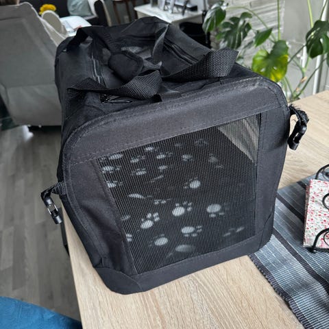 Pent brukt transportveske til kjæledyr fra merket Sherpa i størrelse large. Kun brukt en gang. Brukt til shih tzu, passer kjæledyr i tilsvarende eller mindre størrelse, opp til 10 kg.