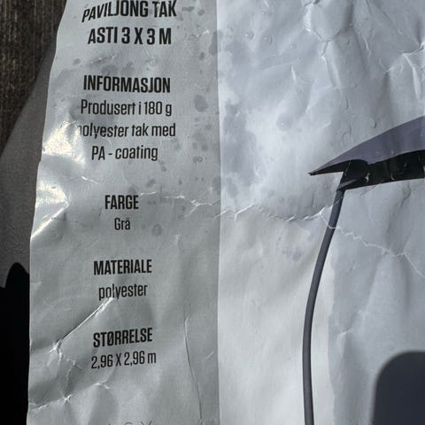 Taket ligger fortsatt i originalemballasjen. Perfekt hvis du trenger å fornye paviljongen din for sesongen!