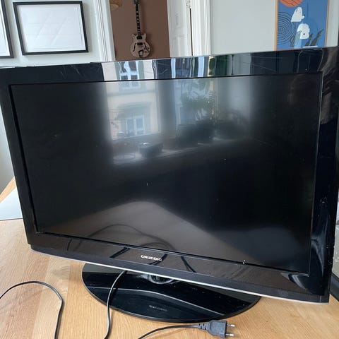Tv fra ca 2008 gis bort. Fjernkontroll mangler. Donald Blad for scale…