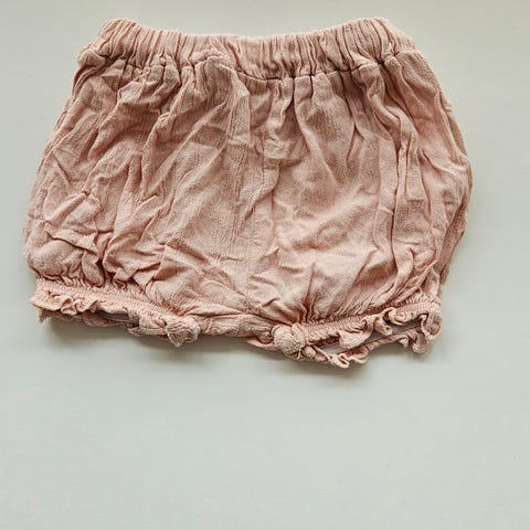 Søt, blomstrete, rosa shorts i strl 3-6 mnd (ca 62).