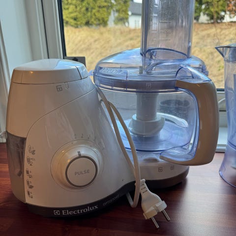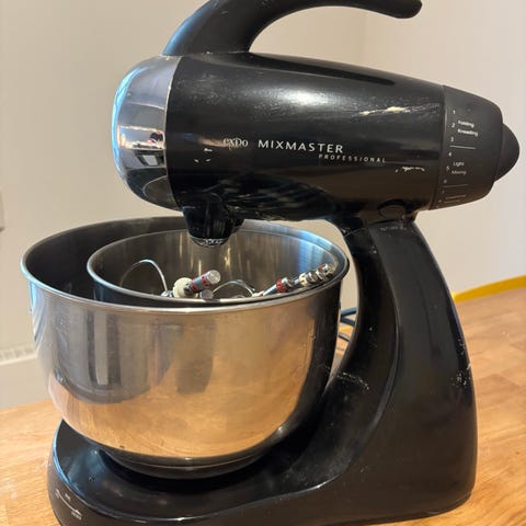 Denne maskinen begynner å bli en del år gammel, men fungerer fortsatt til sitt formål. Det følger med K-spade og visp.