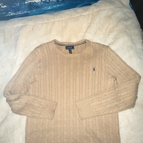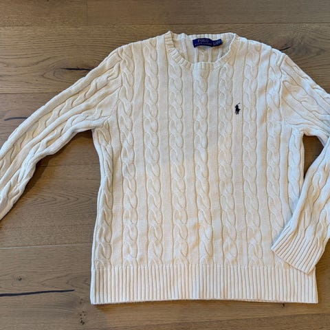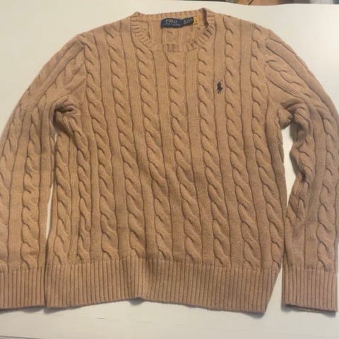 (Brukt en gang så man kan si ny) Small men passer til Medium. Ralph Lauren Polo genser for herre i størrelse S. Genseren er brun og strikket i bomull med flettet kabelmønster. Rund hals og ribbestrikkede kanter nederst og på ermene. Diskret Polo-logo brodert på brystet. Passer til hverdagsbruk og kan kombineres med både jeans og chinos. (NYPRIS PÅ OVER 2500!!) Selges billig. Kontakt meg vis det er noe😀. Åpen for bud.(Kan også trades)