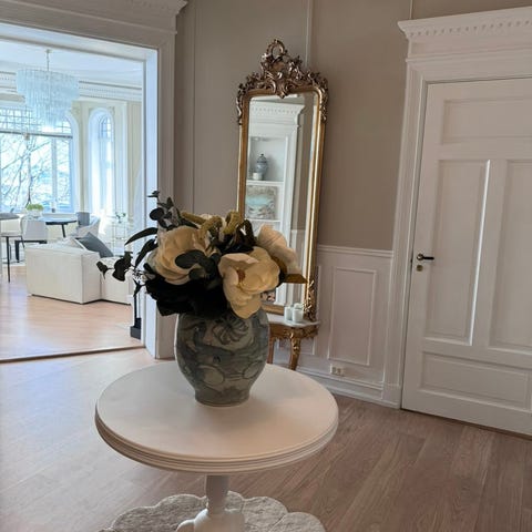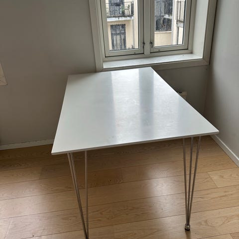 Pent hvitt bord brukt i hall. Kan nok også brukes som spisebord