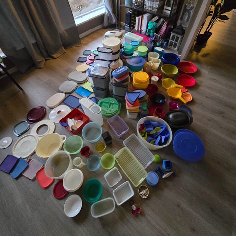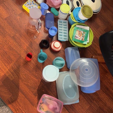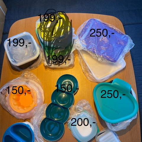 Tupperware kjøkkenutstyr og oppbevaringsbokser plast flerfarget