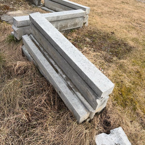 Vi skal kvitte oss med en del heller i betong. De fleste ligger i plenen og må graves opp av dem som vil ha dem. Førstemann til mølla.