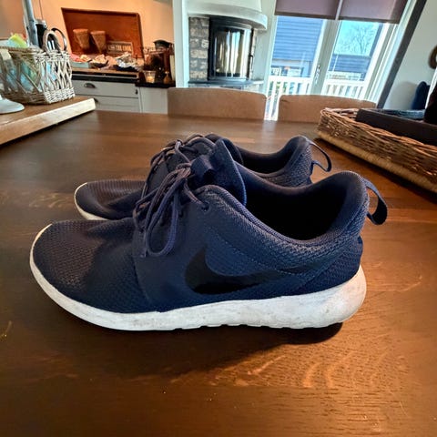Nike sneakers joggesko i størrelse 44. Modellen er i blå og hvit fargekombinasjon med snøring. Overdelen er i syntetisk materiale og tekstil med perforert tåparti for ventilasjon. Yttersålen er i gummi med mønster for grep. Passer til hverdagsbruk og fritidsaktiviteter.
