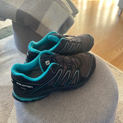 Salomon XA Pro joggesko for barn i størrelse 39. Unisex-modell i blå og grå farger med hurtigsnøring. Skoene har overdel i tekstil med forsterkninger og en grovmønstret yttersåle som gir godt grep. Waterproof. Passer til hverdagsbruk og aktiviteter ute for barn som bruker størrelse 39. Pent og lite brukt, selges kr 300