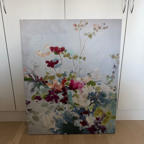 Skeidar veggbilde med motiv av en liggende hjort i natur. Kvadratisk bilde i lyse, nøytrale toner som passer til ulike rom i hjemmet, for eksempel stue, gang eller soverom. Egnet til oppheng på vegg. Koster 1400,- i butikk.