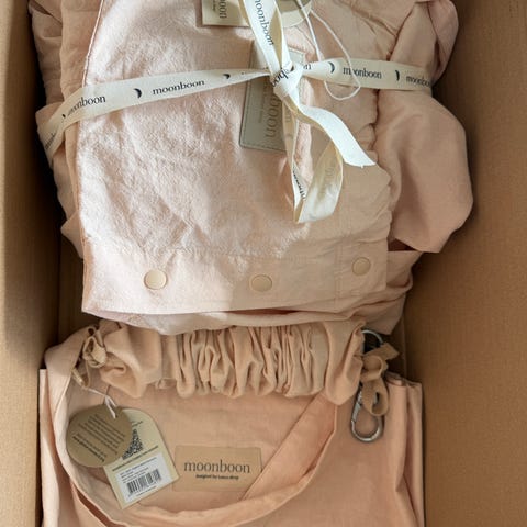 Moonboon hengevugge kjøpt september 2025 og kun brukt til ett barn. Ingen anmerkninger eller bruksmerker. Det ene opphengssettet ligger uåpnet i original emballasje.