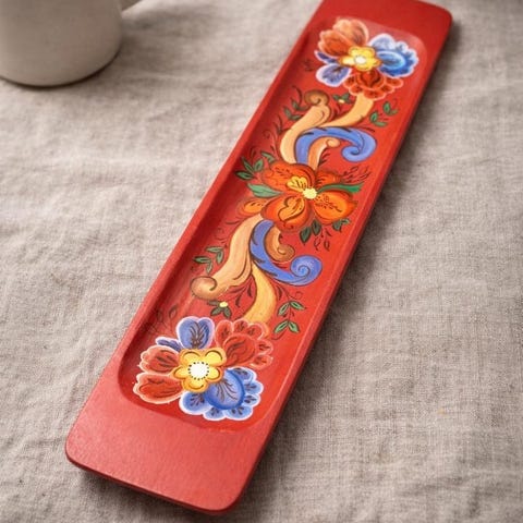 Vakkert rosemalt fat i klassisk norsk stil (rosemaling) 🌿