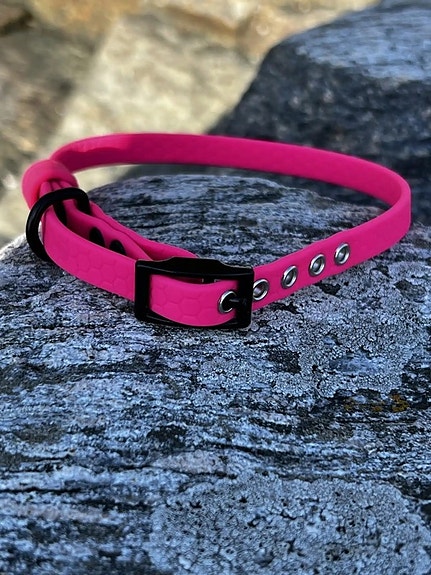 Lavendel, neon rosa, viva magenta, jegergrønn, oliven, svart – og reflekterende varianter for mørke vinterturer. Beslag i sølv eller matt svart. Legg til ekstra O-ringer, karabinkroker, eller oppgrader til aluminiumskrok med 400 kg bruddstyrke.