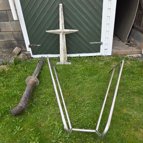 1.rustfritt flatt/kjøljern 5x25mm 4m lengder 5stk 200pr stk 2.sjøvannnspumpe 3/4 type johnson f5b-8 +justerbar brakett 2000 3.eksospotte i rustfrittsyrefast 90mm dn80 flens utv. Dim 200mm lengde tot 2,15m 2000 4. Demperplate ubrukt 600 5.Vannpumpedeler ubrukt diverse pakninger,ventilsett,reim ++