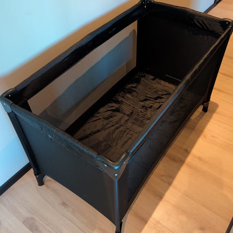 reiseseng for barn. Sengen har myk madrass med overmadrass/trekk i lys farge. Sidene er i tekstil med nettingfelt som gir innsyn og lufting. Egnet som ekstra seng på reise, overnatting eller som seng hjemme.