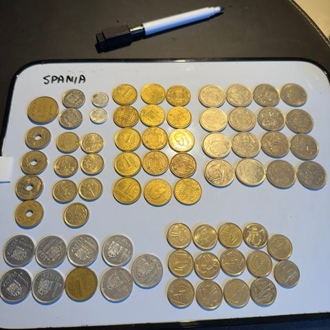 Mynter fra hovedsakelig 1960–1980-tallet, med variasjon i årstall og patina.
