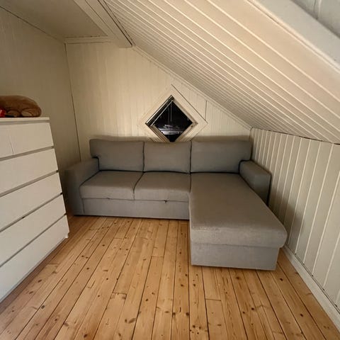 Pent brukt Bårsløv sovesofa fra Ikea selges grunnet flytting. Sofaen har godt med oppbevaringsplass i sjeslongen, og kan brettes ut til en god sovesofa, se bilder.