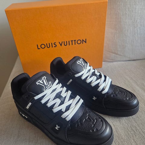 Selger et par Louis Vuitton LV Trainer sneakers i sort farge.