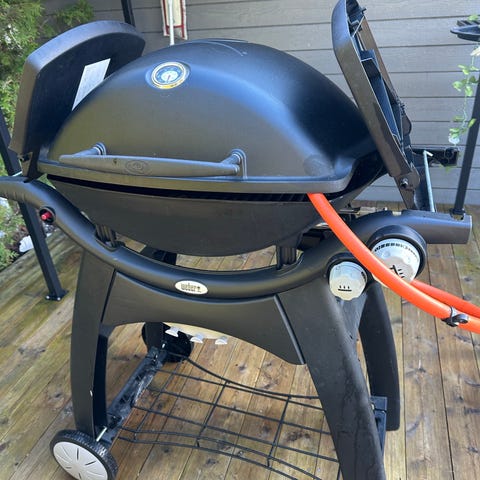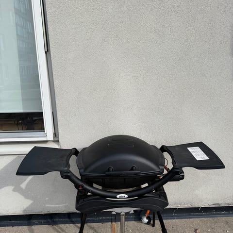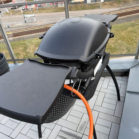 Fungerer som den skal, nett og fin grill som ikke tar altfor stor plass på for eksempel en balkong. Med to sidebord man kan legge inn for mindre plass da den ikke er i bruk. (Slitt bort litt på innsiden av lokket - ses siste bilde) Allerede brukt i mars, selges fordi vi har fått ny!