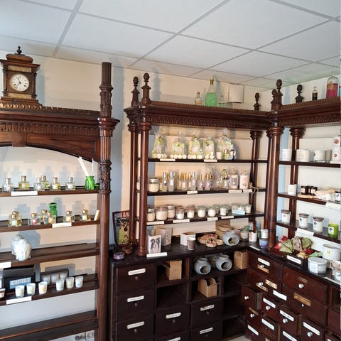 Innredningen kommer fra ett apotek i Tsjekkia.