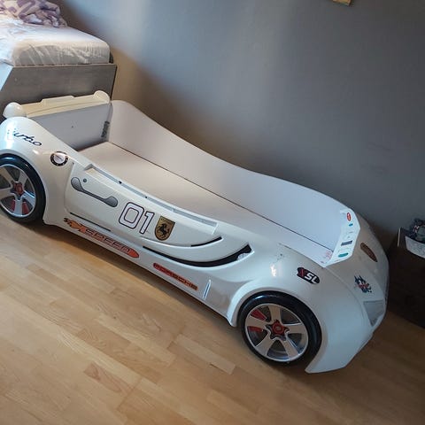 Pen enkeltseng i olivengrønn farge, 90*200 cm. Bena er litt bredere enn madrassen. Sengen er meget pent brukt. Det er enkelte små merker i malingen, se bildet, som knapt synes. Madrassen medfølger ikke.