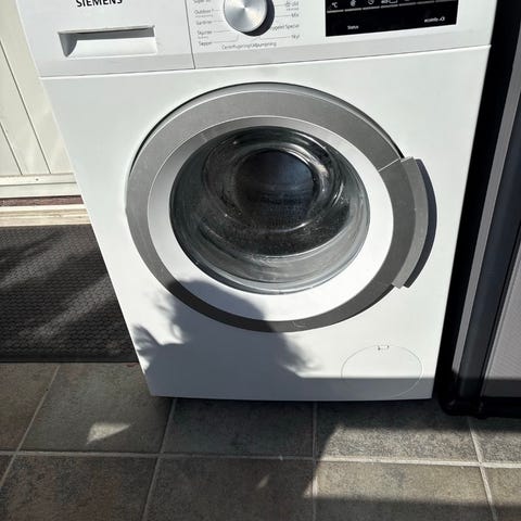 Siemens frontmatet vaskemaskin i hvit utførelse. Maskinen har frontåpning med glassdør og oversiktlig betjeningspanel med programvelger og display. Egner seg til vanlig klesvask i husholdning. Flere vaskeprogrammer og innstillinger for ulike tekstiltyper og temperaturer. Strøm- og vanninntak samt avløp er plassert på baksiden som på standard frittstående vaskemaskiner.