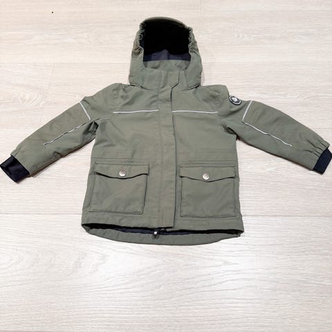 Gullkorn skallsett i størrelse 104. Sett med jakke og selebukse i grønn farge. Litt tykkere, perfekt for været nå!