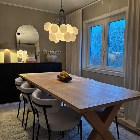 Stolene flasser litt og vi har valgt å ha en kledning over stolene, men ellers gode å sitte på og er fungerende.
