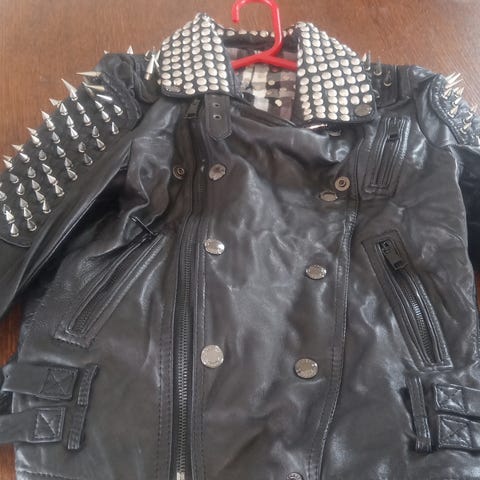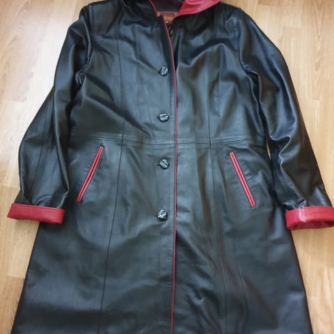 Flott , myk skinnjakke til dame med god passform . Lett innsvinget modell med fine detaljer. Jakken er kjøpt i moderne skinnbutikk i Spania . På innvendig lapp er størrelse 46 oppgitt, jeg vil anslå at den tilsvarer str 40 i Norge .