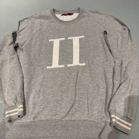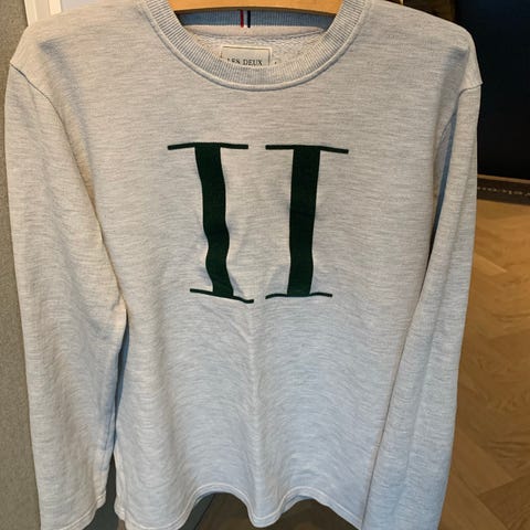 Les Deux genser for herre i størrelse L. Genseren er grå og laget av bomull. Den har rund hals, ribbekanter ved hals, ermer og nederkant, samt trykket logo og motiv på brystet. Passer til hverdagsbruk og kan kombineres med både jeans og joggebukse.