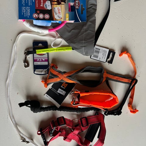 Starmark pro training halsband, 2 refleksband, alac strupeband, oppladbart lysende band og hundekurv.