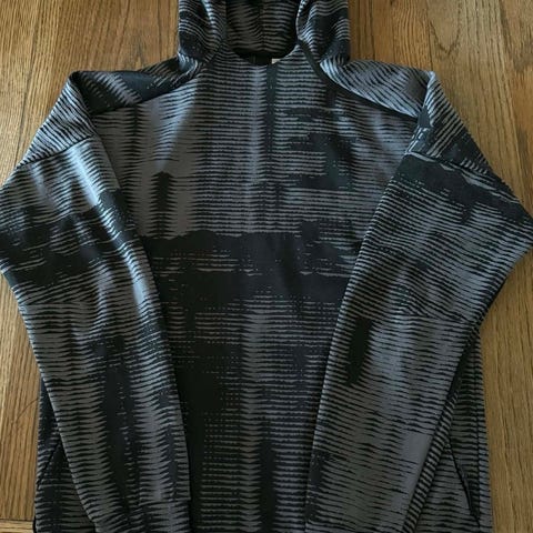 Adidas hettegenser for herre i størrelse M. Genseren har hette med snøring og kengurulomme foran. Farge blå med Adidas-logo på brystet. Passer til hverdagsbruk og lett trening.