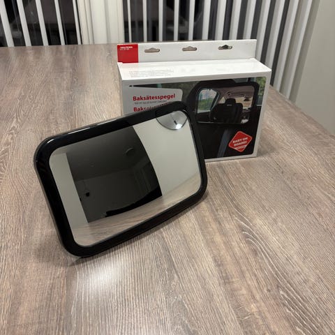 BeSafe bilspeil for å se barnet når du kjører bil. Festet enkelt i nakkeputa. Følger med "kontroll" til å skru på og av lyset på lyset hvis ønskelig.