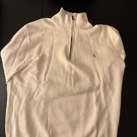 Ribbestrikkede kanter i hals, ermer og nederkant. Liten Polo Ralph Lauren-logo brodert på brystet.