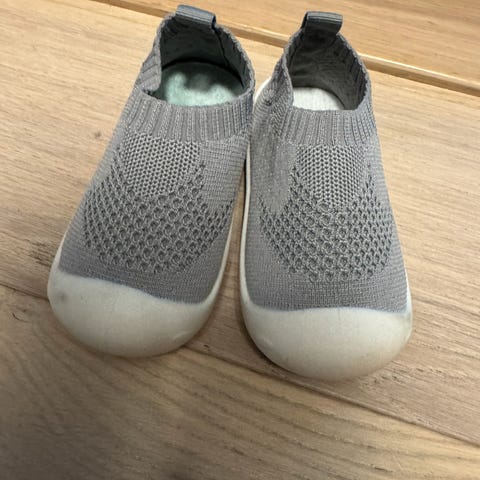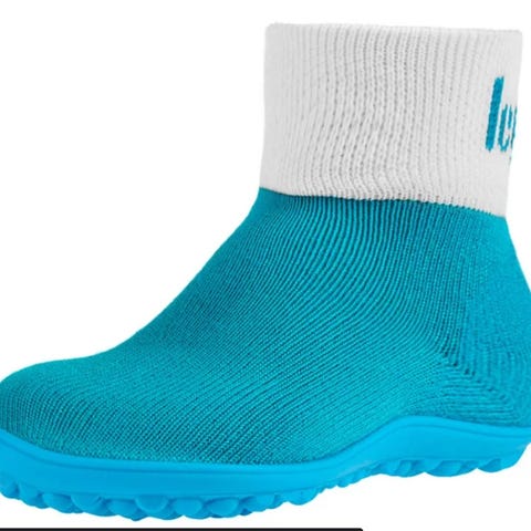 Brukt av ett barn. Dette er de perfekte begynnerskoene for et lite barn. Skoen tres på som en sokk og er veldig fleksibel og komfortabel, samtidig som den beskytter fotsålen og tærne.